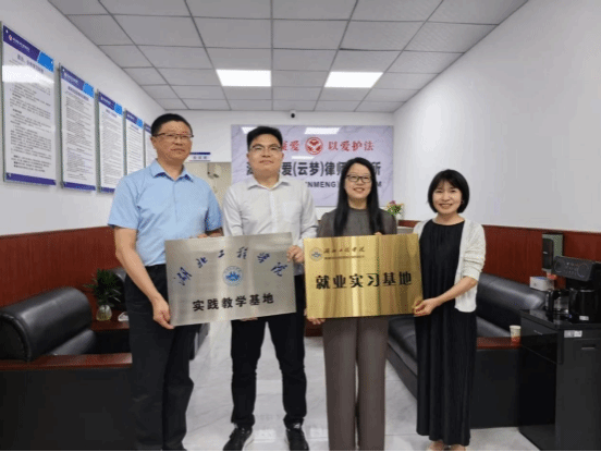 随后,我们副书记魏伶俐详细介绍了本次访企拓岗的具体方案,提出深化院所合作、拓展就业渠道的诉求与展望。法学系主任肖云端与锡爱(云梦)律所负责人袁芳签订基地共建协议,副院长龚先砦、副书记魏伶俐为湖北锡爱(云梦)律师事务所进行授牌。