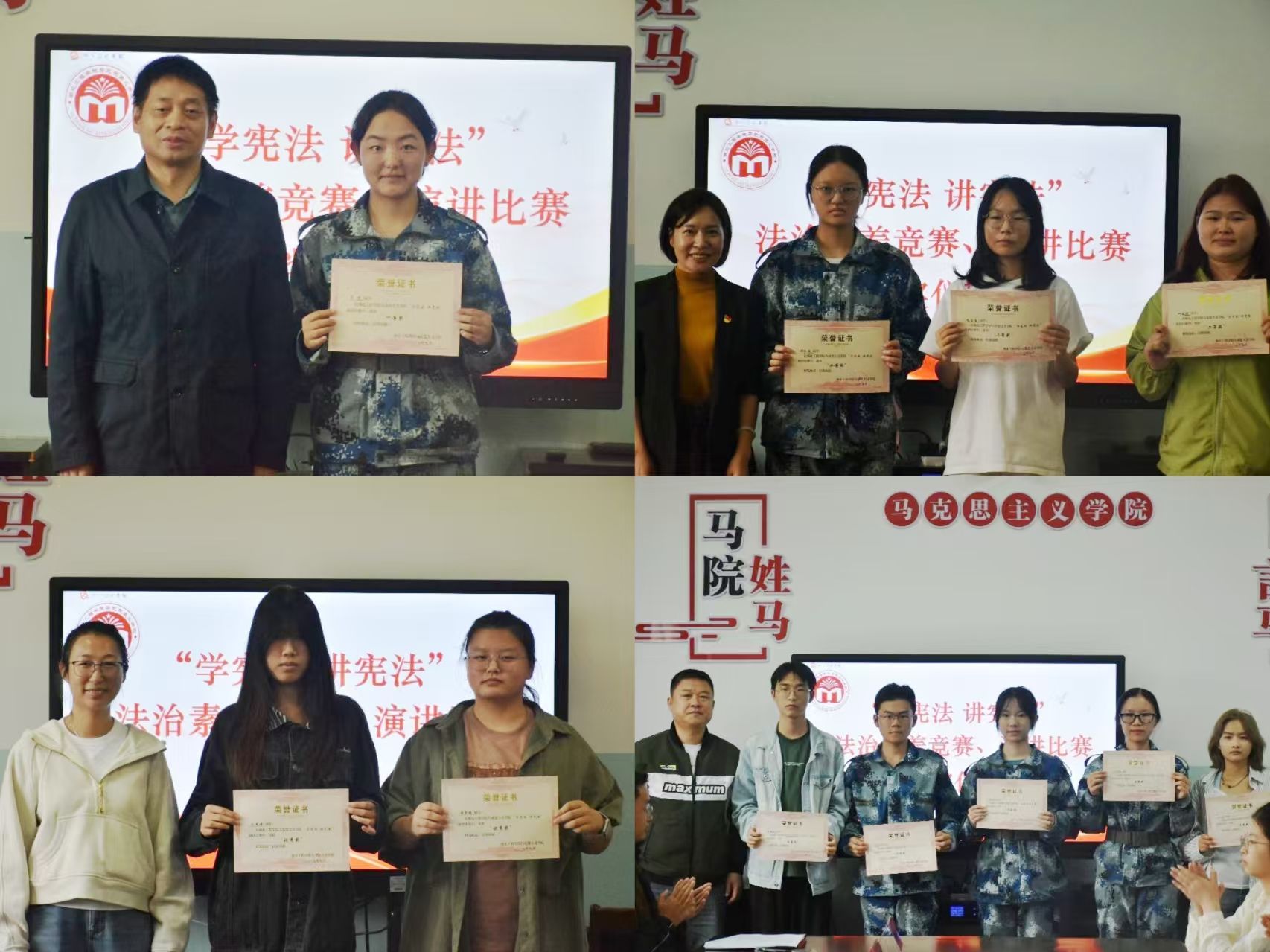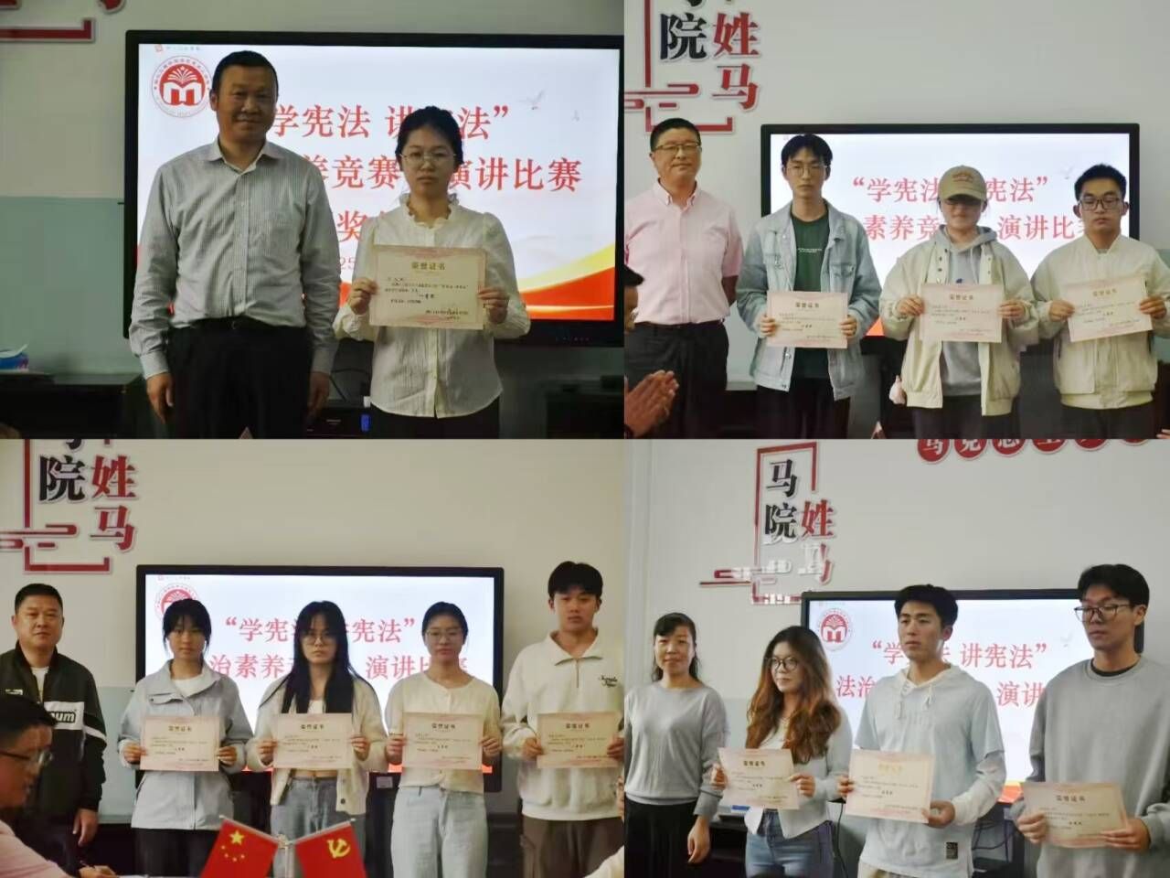 9月22日,学院在经法楼三楼会议室举行颁奖仪式。必威BETWAY官网院长乐波、院党委书记邓春晖、副院长龚先砦、院党委副书记魏伶俐、院长助理周鑫、法学系主任肖云端、法学系教师党支部书记余提、辅导员席鹏飞等出席仪式,并为在“学宪法 讲宪法”法治素养竞赛及演讲比赛中表现优异的学生颁奖。