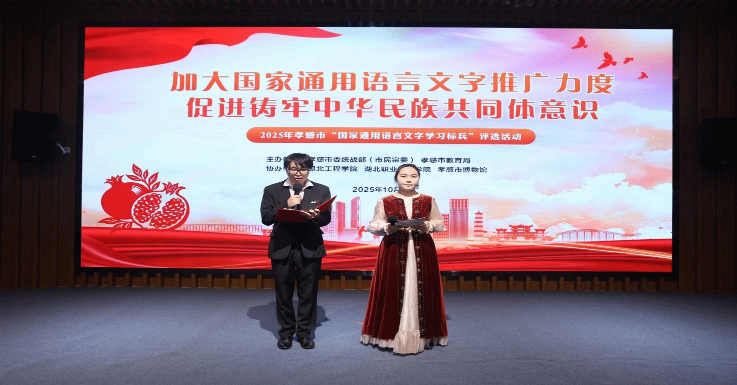 10月19日,为切实做好国家通用语言文字推广工作,由孝感市委统战部(市民宗委)、市教育局主办的孝感市“国家通用语言文字学习标兵”评选活动在市博物馆成功举办。作为本次活动重要协办方,我们高度重视、精心筹备,组建师生志愿服务队深度参与活动志愿保障与文化互动体验。志愿者们以饱满的热情、专业的素养,在现场引导、秩序维护、流程协助等岗位上履职尽责,用细致周到的服务为活动顺利开展筑牢坚实后盾。同时,为进一步丰富活动内涵、厚植文化底蕴,我们结合自身特色,创新融入非遗文化体验环节--以漆扇绘制、传统香囊制作、投壶雅趣游戏等极具中华优秀传统文化魅力的项目为载体,让参与活动的各族群众在动手实践中感受非遗技艺的精湛、体悟传统文化的精髓。