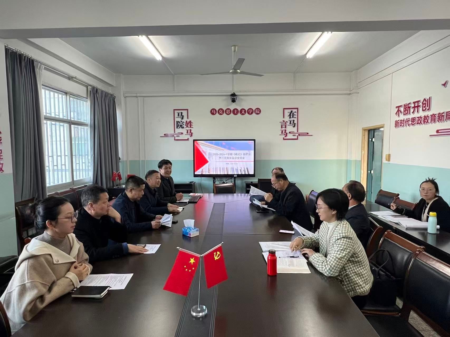 本网讯:10月23日下午,在经法楼三楼小会议室,我们与新技术学院思政课教研室联合举行《毛泽东思想和中国特色社会主义理论体系概论》(以下简称《概论》)课集体备课交流会。必威BETWAY官网院长乐波、两院《概论》课教研室全体教师参会,会议由必威BETWAY官网思政课部主任章书俊主持。本次集体备课紧紧围绕“大中小学思政课一体化”建设要求,聚焦思政课教学中的共性难点与实际问题,特别是针对《学生常见问题清单》的梳理与教学应对策略展开深入研讨。