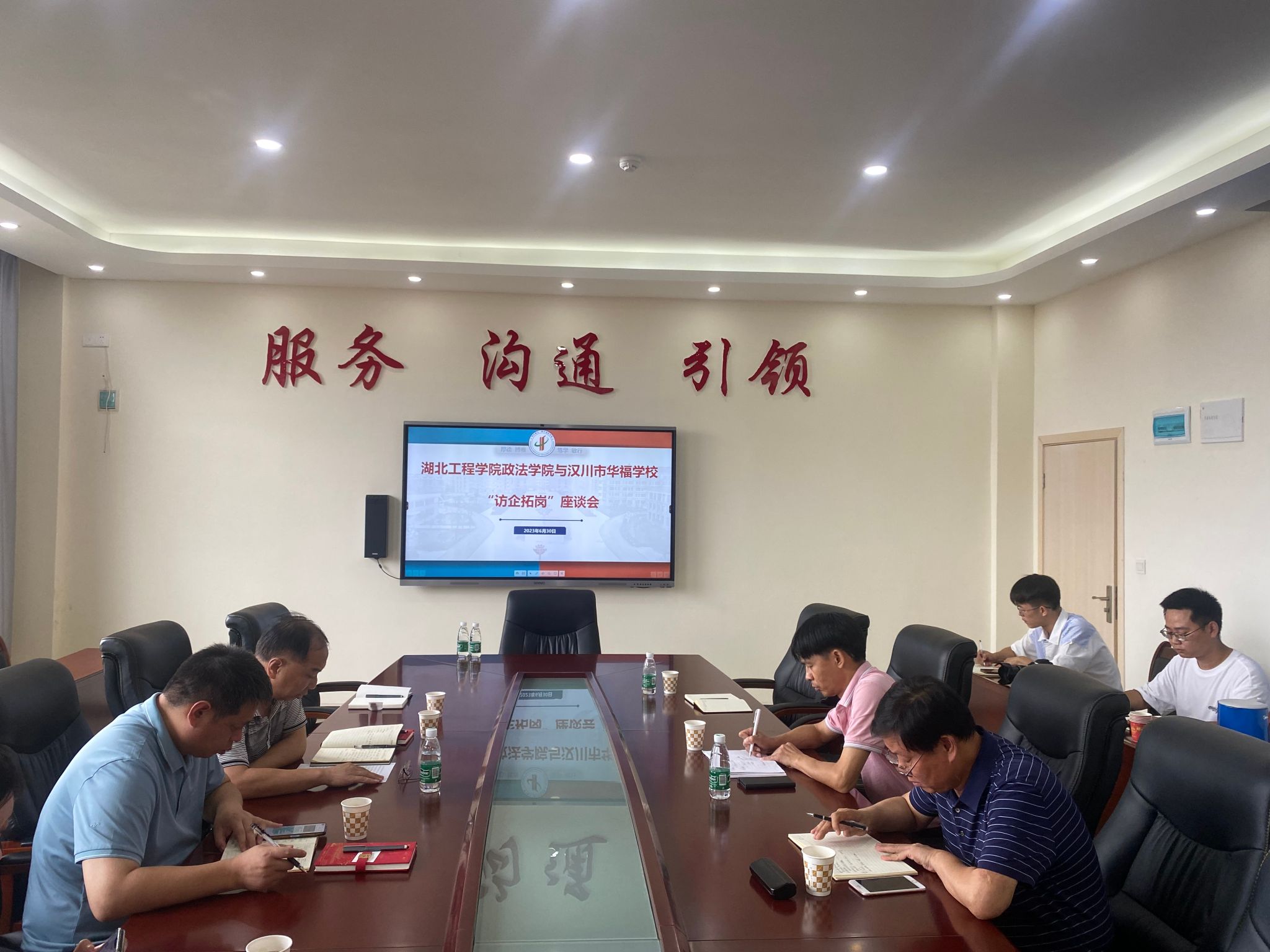 本网讯:6月30日,政法学院院长李新安教授、党委书记邓春晖教授等一行5人,来到汉川市华师一附中福星学校,开展“访企拓岗”活动,并洽谈两校合作交流事宜,受到福星学校党支部书记、校长赵飞马,副校长陈砚堂、周鸿武等领导的热情接待。双方在福星学校综合楼四楼小会议室举行了座谈。