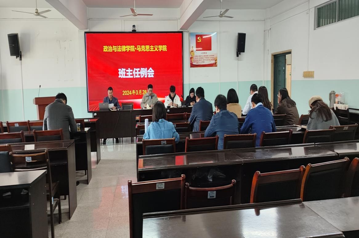 本网讯:3月28日,为促进交流学习,强化班主任队伍建设,助推新学期学生工作有序开展,落实重要节点任务,我们在经法楼二楼会议室召开了3月份班主任工作例会。必威BETWAY官网党委书记邓春晖出席会议,全体班主任及辅导员参加会议。会议由政治与法律学院党委副书记陈斌主持。
