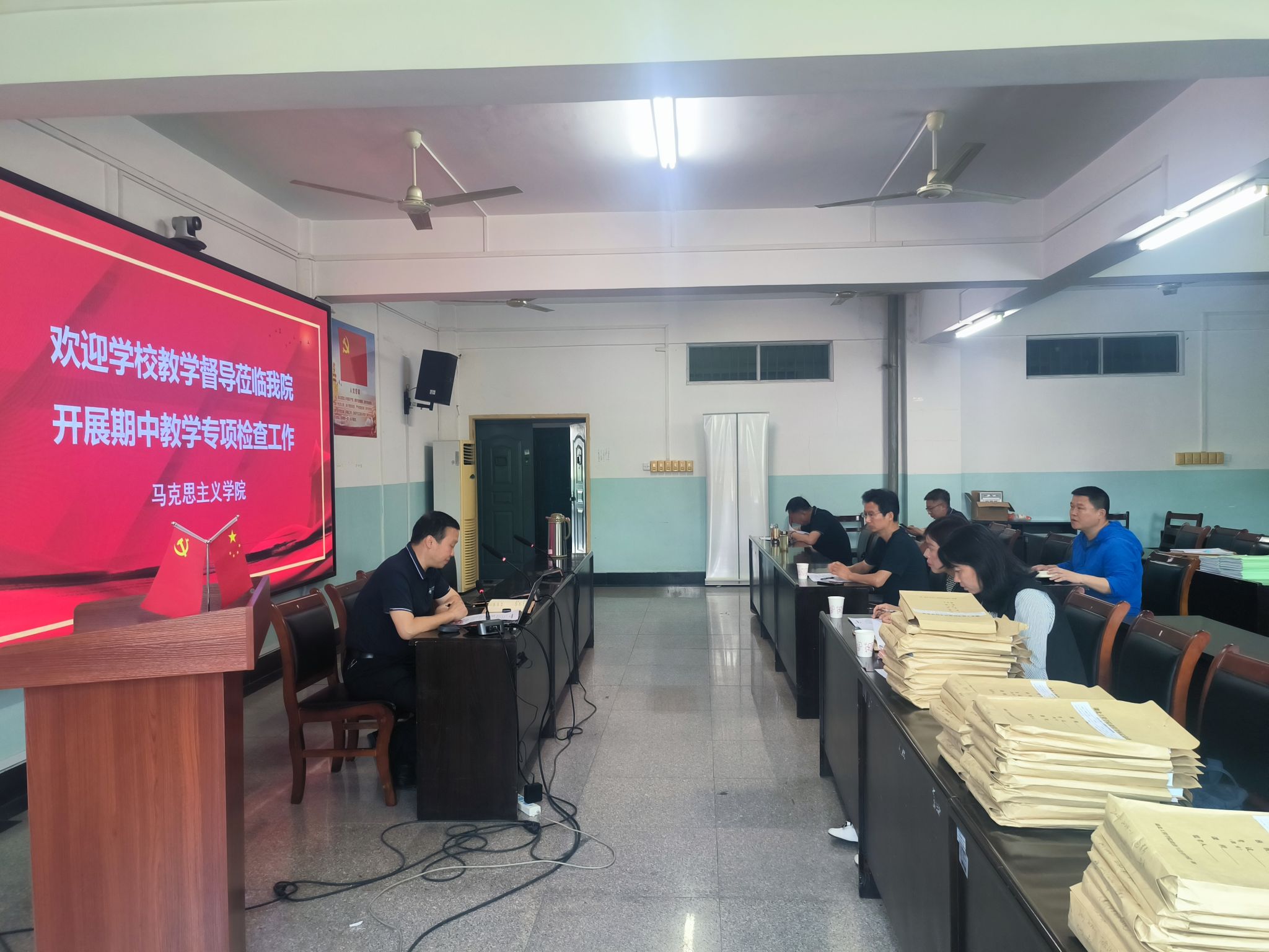 乐波代表马克思主义学院作工作汇报。他表示,我们高度重视日常教学管理工作,对照本次期中教学检查项目,已经做好了各项迎检的准备工作。他从期中教学自查情况、培养方案修订、专业认证申请与整改、教学常规执行、试卷的命题与评阅、实习安排以及学生座谈会等方面进行了详细介绍。随后,思政系主任周鑫结合师范生专业认证和教学质量评估的相关要求,对日常教学管理的一些细节问题作了进一步说明。